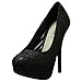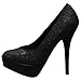 Truly the shoe of a Diva, this fierce pump's exterior is done completely solid in black glitter. Insole is slightly cushioned for added comfort. The platform measures 1.25", making walking a breeze.